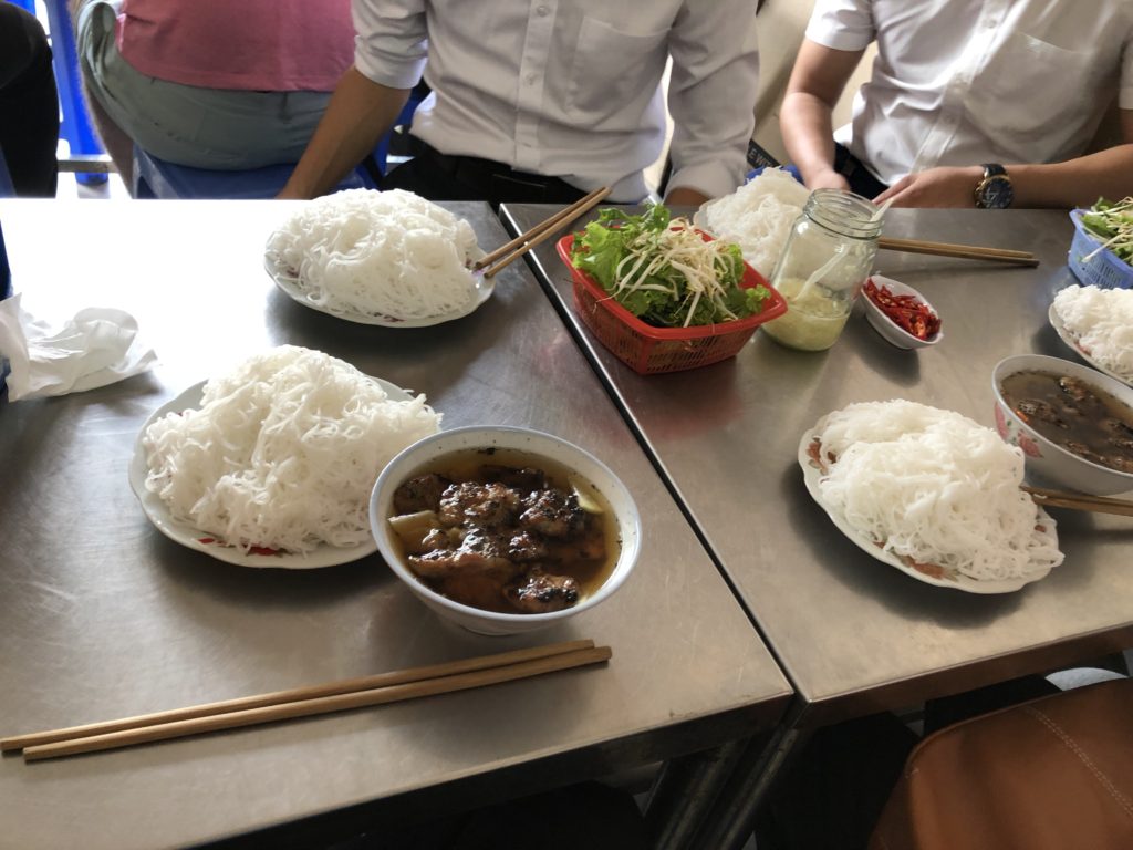 牛肉スープに野菜をたっぷり投入、米粉麺をつけて食べます。肉が甘くて美味い。ん~。絶品です。ただパクチーは少量でいいかな。