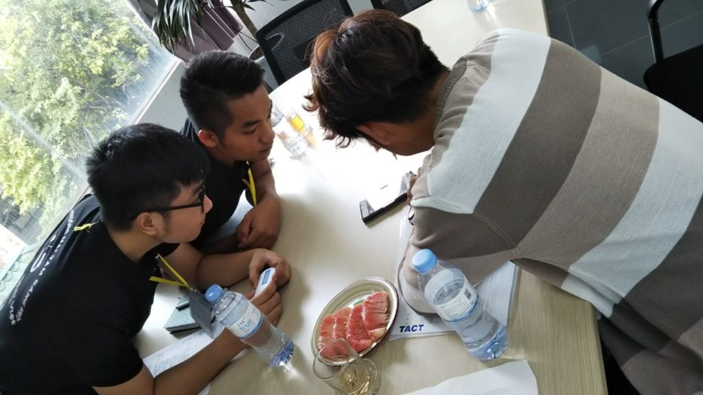 TAMSANG社長、副社長と初対面。かなり日本語が上手く普通に何でも話せます。日本人講師もいて生徒に教育を行っています。