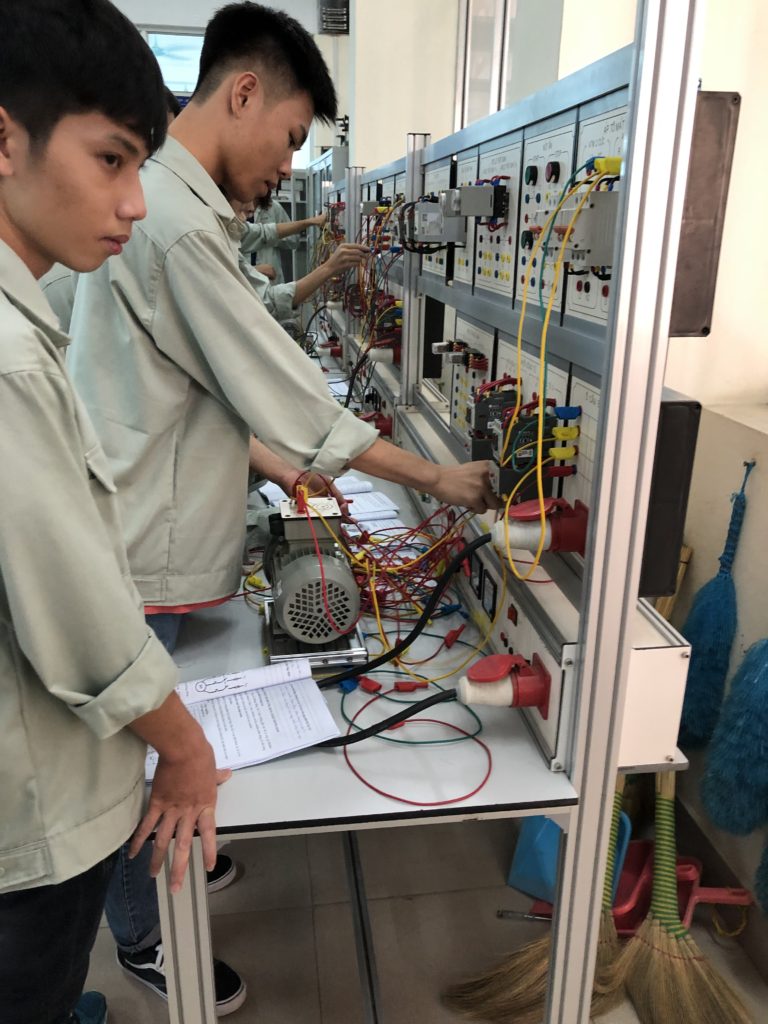 制御プログラミングや電気回線図の構築、発電モーターや内部部品の取付。モーターを動かす配線方法など色々な授業を受けていました。
