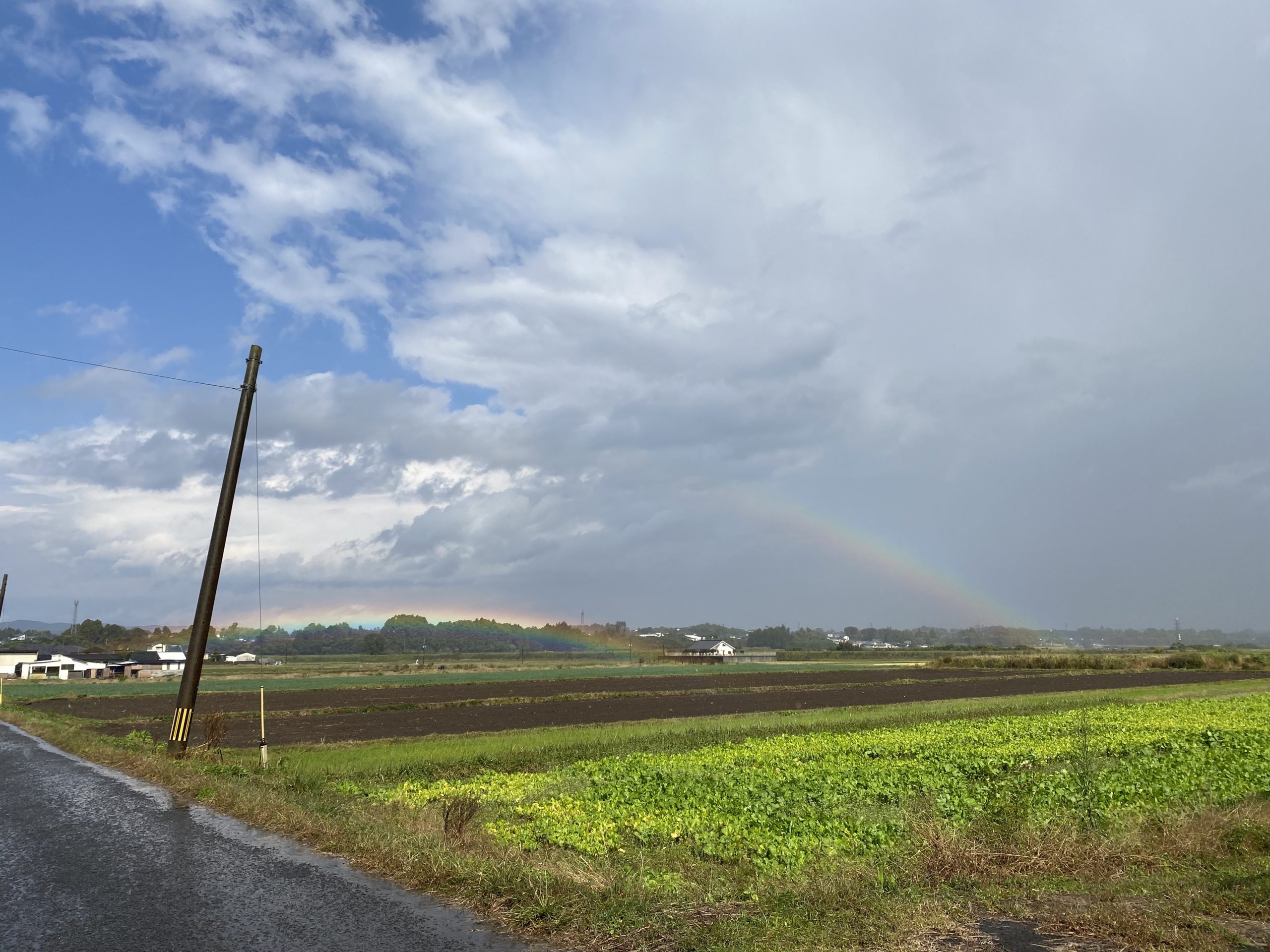 壮大な霧島山と都城での二重の虹 宮崎地鶏